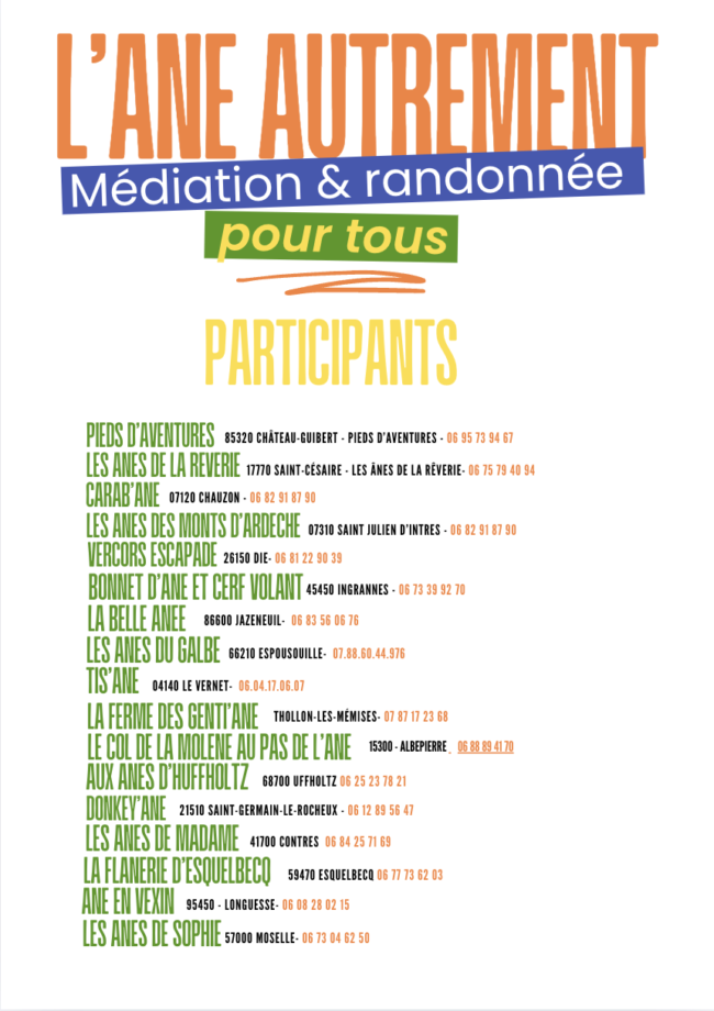Du 4 au 11 octobre 2025, la France vivra au rythme des ânes avec les Journées Nationales « L’Âne autrement ». Une semaine conviviale et inclusive, organisée par la Fédération Nationale Ânes et Randonnées (FNAR), pour mettre en lumière les bienfaits de la médiation animale et de la randonnée avec un âne.